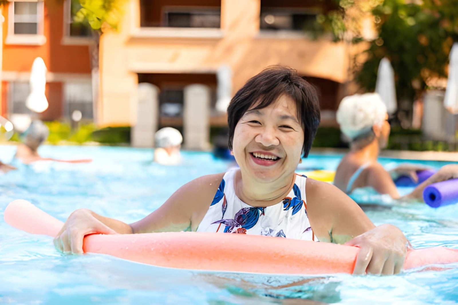 For seniors with arthritis, stiff knees, or general joint discomfort, swimming is an accessible form of exercise. Thanks to water's natural buoyancy, the pool can support up to 90% of your body weight, significantly reducing the impact on your joints with every movement. This means you can stay active and keep your body moving without the pain or strain that often comes with land-based exercise. Clinically, aquatic exercise has been shown to outperform land-based exercise for joint pain relief.