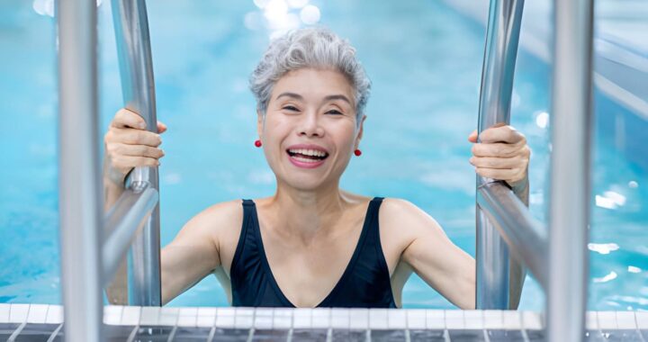 Swimming also offers several benefits for women experiencing menopause. Research has shown that regular aquatic exercise improves physical fitness and quality of life in postmenopausal women which includes cardiovascular endurance, strength, and overall wellbeing.